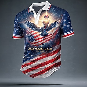 4 lipca 2026 250. Męskie Amerykańska flaga USA W sprayu Gra polo Krótki rękaw Koszulki polo Klapa Codzienny Athleisure Strój festiwalowy Druk 3D Guziki Lato Niebieski