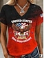 Święto Niepodległości Patriotic Women's T-Shirt Graficzna Litera Vintage Stylowa Klasyczna Krótkie Rękawy V Neck Regularne Top Codzienne Print Niebieski Czarny Biały Czerwony Lato Wiosna