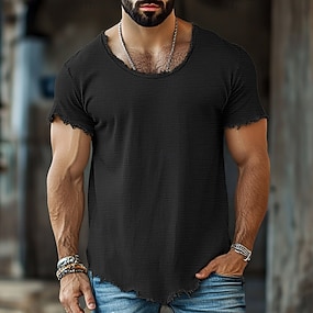 Męskie Podkoszulek Krótki rękaw Półgolf Wiosna i lato Równina Moda Codzienny Wygodny Raw Edge Ulica Święto Plaża Czarny Biały Jasnozielony Top Tee dla mężczyzn