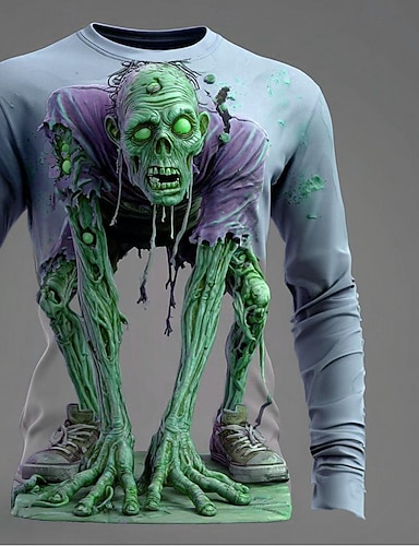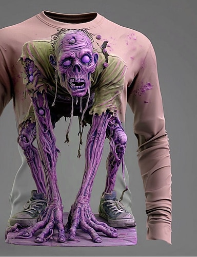 Męskie Wzór 3D Zombie 3D Podkoszulek Krótki rękaw Podkoszulek Druk 3D Półgolf Koszula Przesadny Designerskie Przerażenie Impreza Ulica Święto Żółty Niebieski Fioletowy Lato Wiosna Na każdy sezon