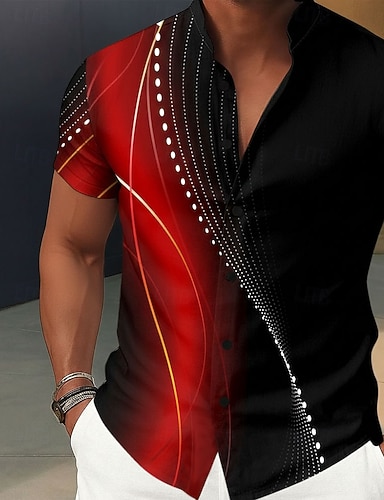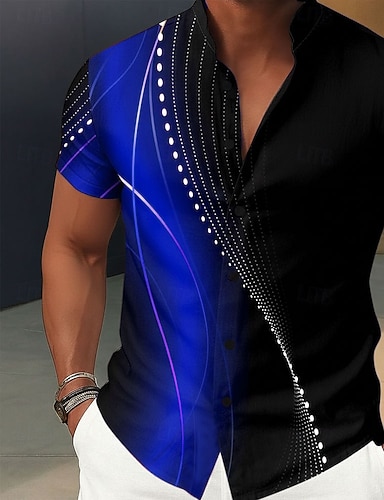 Męskie Geometryczny Gradient Falowane Koszula Koszula ze stójką Długi rękaw Moda na co dzień Na co dzień Święto Wiosna Jesień Kołnierzyk chiński Stójka Druk 3D Koszule zapinane na guziki Niebieski