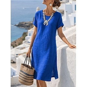 Damskie Sukienka midi Codzienne sukienki Moda Nowoczesny Na zewnątrz Urlop Wyjściowe Luźna Równina Krótki rękaw Półgolf Biały Wino Królewski błękit Brązowy Lato Wiosna