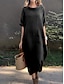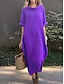 Damskie Sukienka maxi Codzienne sukienki Bawełniana lniana sukienka Sukienka A line Podstawowy Codzienny Urlop Codzienny Regularny Równina Krótki rękaw Półgolf Żółty Czerwony Niebieski Fioletowy Lato