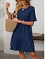 Damskie Normalny Jednoczęściowe Aktywny Jednokolorowe Krótki rękaw W serek Falbana Guziki Codzienny Urlop Regularny Granatowy Lato