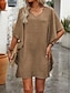 Damskie Sukienka mini Sukienka trapezowa Codzienny Codzienny Luźna Równina Rękaw 3/4 W serek Wino Fioletowy Ciemnoniebieski Morelowy Lato