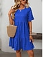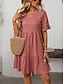 Damskie Sukienka midi Sukienka trapezowa Letnie sukienki Codzienny Codzienny Regularny Równina Krótki rękaw W serek Czarny Czerwony Zielony Lato Wiosna