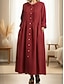 Damskie Sukienka maxi Sukienka trapezowa Codzienny Codzienny Regularny Równina Rękaw 3/4 Lejący się dekolt Czarny Biały Żółty Czerwony Lato Wiosna Jesień