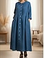 Damskie Dżinsowe sukienki Sukienka koszulowa Sukienka maxi Biuro Urlop Jeans Podstawowy Nowoczesny W serek Guzik Rękaw 1/2 Lato Wiosna Regularny Równina