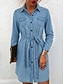 Damskie Dżinsowe sukienki Sukienka mini Guzik Codzienny Kołnierzyk koszuli Długi rękaw Czarny Granatowy Jasnoniebieski Kolor