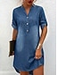 Damskie Sukienka mini Codzienne sukienki Sukienka A line Denimowa koszula Moda Podstawowy Codzienny Na zewnątrz Urlop Codzienny Regularny Równina Krótki rękaw W serek Niebieski Lato Wiosna