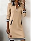 Damskie Sukienka midi Sukienka sweterkowa Urlop Codzienny Biuro Codzienny Randka Równina Długi rękaw Kołnierz stawiany Beżowy