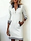Damskie Sukienka do kolan Sukienka trapezowa Codzienny Ulica Święto Regularny Równina Długi rękaw Półgolf Niebieski Biały Czerwony Khaki Wiosna Jesień