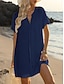 Damskie Sukienka mini Sukienka trapezowa Letnie sukienki Codzienny Codzienny Luźna Równina Krótki rękaw W serek Granatowy Czarny Biały Błękit nieba Lato