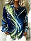 Damskie Koszula Bluzka Niejednolita całość Guziki Graficzny Geometryczny Elegancki Klasyczny Nowoczesny Długi rękaw Kołnierzyk koszuli Zwykłe topy Codzienny Święto Wyjściowe Niebieski Lato Wiosna