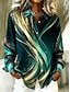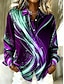 Damskie Koszula Guziki Nadruk Graficzny Geometryczny Abstrakcja Zabytkowe Elegancki Nowoczesny Długi rękaw Kołnierzyk koszuli Zwykłe topy Codzienny Niebieski Fioletowy Zielony Beżowy Wiosna Zima
