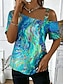 Damskie Podkoszulek Koszulka Nadruk Graficzny Abstrakcja Moda Klasyczny Codzienny Krótki rękaw Na jedno ramię Zwykłe topy Codzienny Wyjściowe Weekend Niebieski Rumiany róż Fioletowy Lato Wiosna