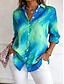 Damskie Koszula Tunika Letnie szczyty Guziki Ombre Graficzny Urlop Codzienny Długi rękaw W serek Zwykłe topy Codzienny Święto Wyjściowe Niebieski Fioletowy Pomarańczowy Zielony Lato Wiosna