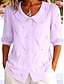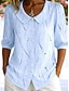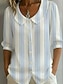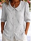 Bluzka Damska Przypominająca Len Oddychająca Lekka Graficzna Geometryczna Aktywna Vintage Codzienna Długi Rękaw Koszula Z Kołnierzykiem Regularne Top Codzienne Guziki Jasnoszary Lato Wiosna