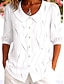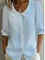 Koszula dla kobiet przypominająca len oddychająca lekka rozpinana tunika kołnierzyk długi rękaw kot casual regularne topy do pracy codziennie w kolorze białym wiosna jesień zima