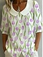 Damskie Bluzka Koszula z imitacji lnu Guziki Nadruk Kwiaty Zabytkowe Elegancki Codzienny Krótki rękaw W serek Zwykłe topy Codzienny Niebieski Fioletowy Zielony Jasnoniebieski Lato Wiosna