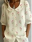 Damskie Koszula Guziki Nadruk Kwiaty Graficzny Aktywny Codzienny Elegancki Długi rękaw Kołnierzyk koszuli Zwykłe topy Codzienny Święto Niebieski Biały Czerwony Granatowy Khaki Wiosna Jesień