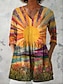 Damskie Bluzka Nadruk Graficzny Słońce Urlop Codzienny Rękaw 3/4 W serek Zwykłe topy Codzienny Święto Wyjściowe Pomarańczowy Lato Wiosna Jesień