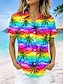 Damskie Koszula Guziki Nadruk Graficzny Słońce Urlop Codzienny Elegancki Krótki rękaw W serek Zwykłe topy Codzienny Święto Wyjściowe Tęczowy Lato Wiosna