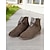 Damskie brązowe zamszowe buty zimowe z mankietami ze sztucznego kożucha i bocznym zamkiem błyskawicznym, stylowe obuwie miejskie na chłodne dni