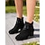 Damskie czarne, skórzane, zimowe buty śnieżne do kostki, ciepłe, wyściełane polarem, antypoślizgowe, wygodne obuwie outdoorowe na zimne dni &odzież świąteczna na Boże Narodzenie
