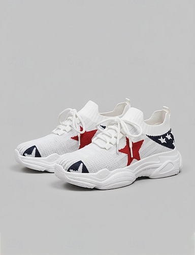 damskie buty USA 250 patriotic flats - wygodne, dzianinowe buty w niebiesko-białe paski z detalami w kształcie gwiazdek na amerykański Dzień Niepodległości i parady &letnie ubrania wakacyjne