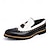 męskie czarno-białe, plecione mokasyny ze sztucznej skóry z metalowymi akcentami, eleganckie, wsuwane buty wizytowe na spotkania biznesowe, imprezy i oficjalne wydarzenia