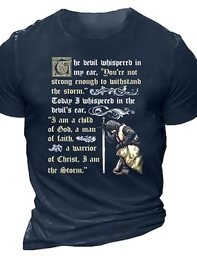 Męska koszulka T-shirt z krzyżem rycerzy templariuszy wiary Krótki rękaw T-shirt 3D Print Koszulka z okrągłym dekoltem Moda Codzienna Ulica Codzienna Czarne Lato Wiosna Ubrania