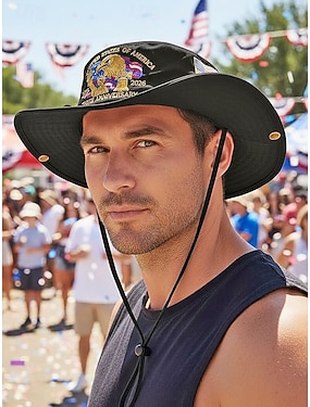 Męski składany kapelusz przeciwsłoneczny, wielokolorowy, z poliestru, z haftowanym orłem i flagą, lekki kapelusz turystyczny, idealny na 250. rocznicę Stanów Zjednoczonych, Dzień Niepodległości, sporty na świeżym powietrzu i podróże wakacyjne