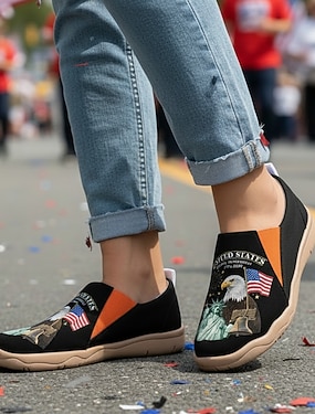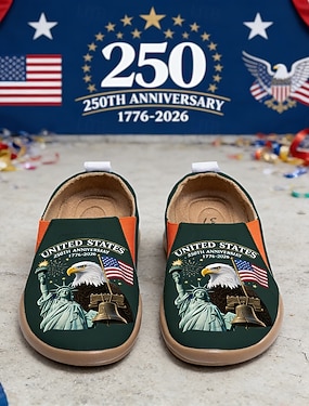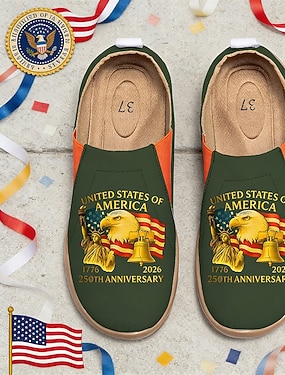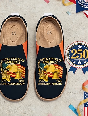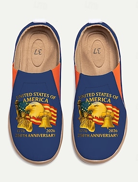Amerykańskie Damskie Buty Slip-On Z Drukiem USA W Okazji 250. Rocznicy – Lekkie Buty Do Chodzenia Patriotyczny Miejski Styl Na Ulice Festiwale Podróże I Codzienne Użytkowanie