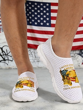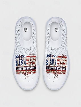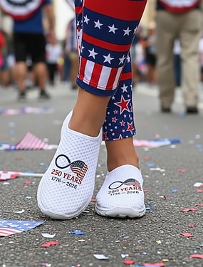 Damskie białe, patriotyczne, wsuwane trampki – lekkie, oddychające buty do chodzenia z nadrukiem amerykańskiej flagi i grafiką 250 lat, idealne na co dzień, na świąteczne okazje, w podróż i na zajęcia