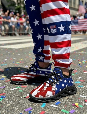 Stany Zjednoczone 250-lecie Narodzin - Damskie sneakersy z grafiką flagi USA - Amortyzowane oddychające obuwie sportowe patriotyczny styl casualowy na parady USA podróże i codzienne noszenie