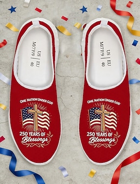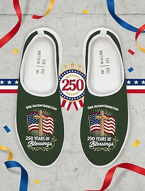 Damskie tenisówki slip-on z nadrukiem flagi Ameryki na 250-lecie Stanów Zjednoczonych - patriotyczne buty z flagą USA lekkie i oddychające buty na Dzień Niepodległości parady i codzienne noszenie