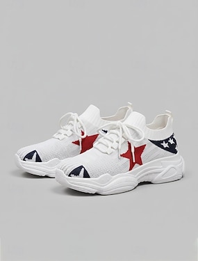 Damskie patriotyczne dzianinowe trampki – oddychające, lekkie, sznurowane buty do chodzenia z nadrukiem w gwiazdy, swobodny, sportowy styl na Dzień Niepodległości, parady, podróże &odzież codzienna