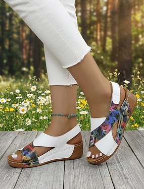 Stany Zjednoczone 250-lecie Narodzin - Damskie kolorowe sandały z motywem motyla z regulowanym zapięciem - Żywiołowe letnie sandały slip-on na plażę wakacje i casualowe noszenie
