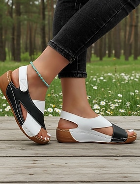 Damskie Codzienny Podróże Dzień Niepodległości Płaski obcas Okrągły palec u nogi Bohema Urlop Codzienny Guma Siateczka Wsuwane Czarny Niebieski