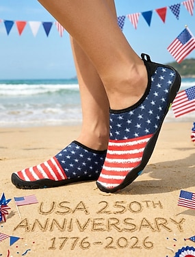 Damskie patriotyczne buty do wody z okazji 250. rocznicy – szybkoschnące, szerokie, antypoślizgowe, idealne na plażę, basen, podróż i lato