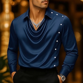 Męskie Koszula Jedwabny Satynowa koszula Codzienna koszula Równina Formalny Ślub Czarny Biały Granatowy Złoty Długi rękaw Lejący się dekolt Wiosna i jesień Na każdy sezon Odzież Z marszczeniami