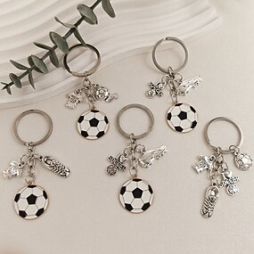 Zestaw 5 breloków piłkarskich dla chłopców i dziewcząt, srebrny metalowy brelok piłkarski z wieloma zawieszkami w kształcie korków, upominki na imprezy sportowe, prezenty dla drużyny piłkarskiej,