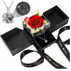 Prezenty dla kobiet mamy jej zachowana czerwona prawdziwa róża z naszyjnikiem w kształcie serca I Love You prezenty urodzinowe dla żony dziewczyny babci na Walentynki Dzień Matki rocznicę -