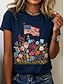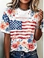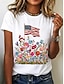Amerykański Dzień Niepodległości Damskie Podkoszulek Nadruk Kwiaty Graficzny Flaga Elegancki Klasyczny Codzienny Krótki rękaw Półgolf Okrągły dekolt Zwykłe topy Codzienny Niebieski Czarny Biały