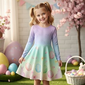 Wielkanoc Dziewczyny ' 3D Graficzny Zając Sukienka Długi rękaw Druk 3D Wiosna Jesień Codzienny Urlop Impreza Codzienny Księżniczka Piękny Dzieci 4-12 lat Codzienne sukienki Sukienka A line Do kolan