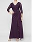 Damskie Sukienka maxi Sukienka syrenka Elegancja Wieczorna impreza Ślub Ukończenie szkoły Wiązanie Udekorowany Kwiaty Rękaw 3/4 W serek Oberżyna