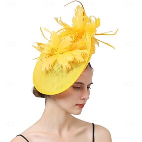 fascynatory kapelusz kentucky derby akcesoria do włosów futro strusia mieszanka lnu/bawełny kapelusz typu Bucket impreza/wieczór Belmont Stakes kubek melbourne z piórami kwiatowy nakrycie głowy