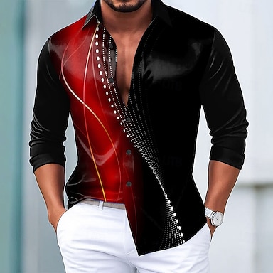 Męskie Geometryczny Gradient Falowane Koszula Satynowa koszula Koszule eleganckie Długi rękaw Moda na co dzień Urlop Na co dzień Lato Wiosna Jesień Wieczorne Druk 3D Koszule zapinane na guziki Czarny