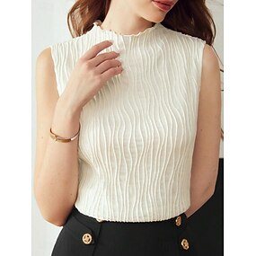 Damskie Podkoszulek Teksturowany Koszulka Żakard Jednokolorowe Elegancja Moda Elegancki Bez rękawów Wysoki Zwykłe topy Codzienny Wyjściowe Czarny Morelowy Lato Wiosna